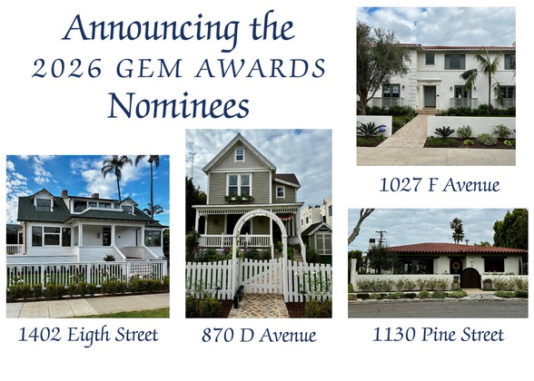 In that spirit, every year since 2013 the Coronado Historical Association bestows a GEM award to the owner of a local home or business who by Going the Extra Mile accomplished exceptional results in preserving a Coronado cultural resource. These dedicated community members choose to restore rather than replace these structures, ensuring that Coronado’s architectural GEMs remain in place for generations to come. Each award is for projects completed by December 31. The award is presented the following spring. Submit your nominations below.