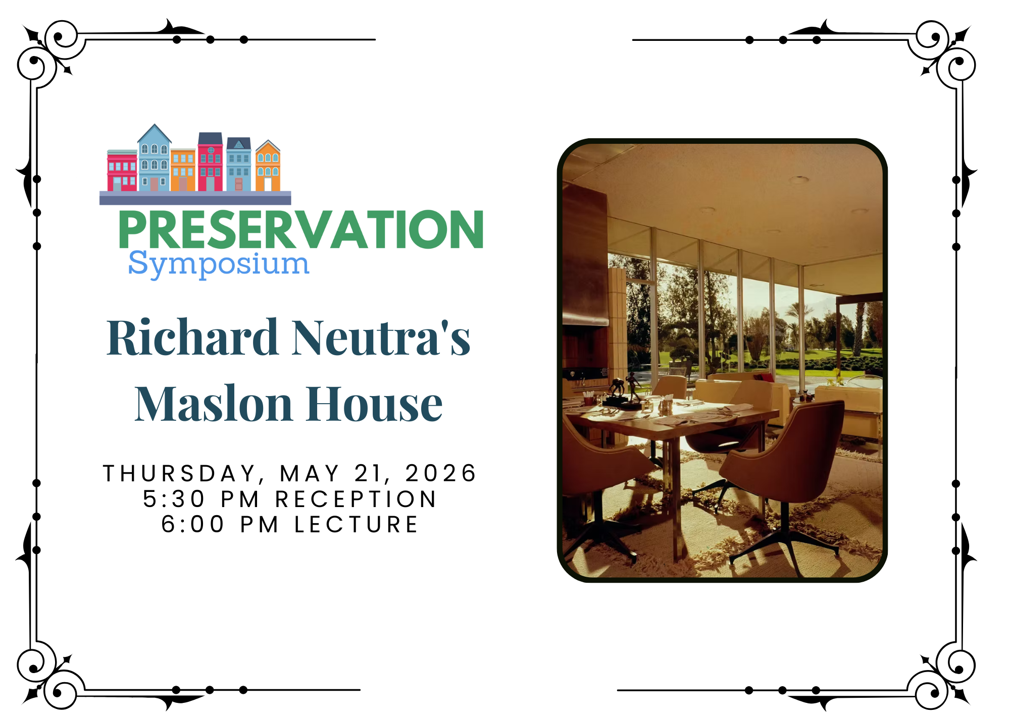 The celebrations will culminate in the annual Preservation Symposium on Thursday, May 21, at 5:30 PM. A wine and cheese reception will be followed by the program at 6:00 PM.
